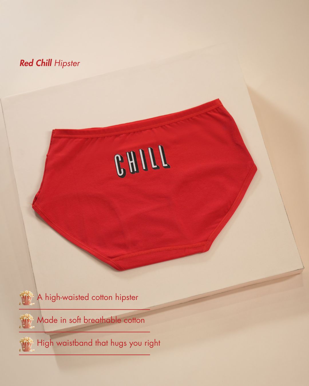 A high-waisted cotton hipster duo that says it all — Red “Chill” and Black “Censored.” Made in soft breathable cotton for ultimate comfort with a flattering high waistband that hugs you right.
